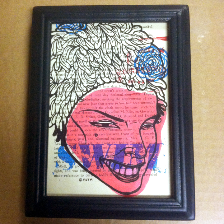 Original ink drawing on vintage paper in 4x5 black frame with glass